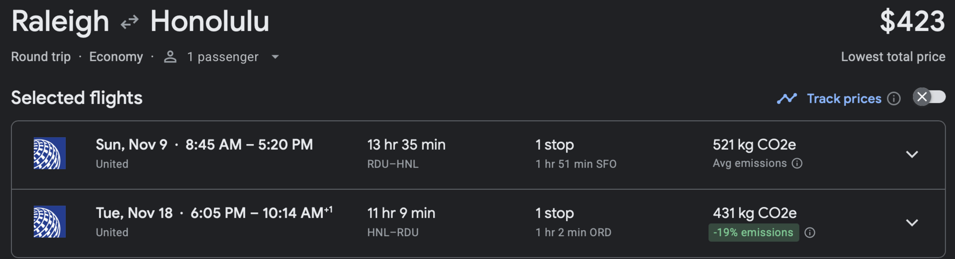 Price: $423 Round-Trip