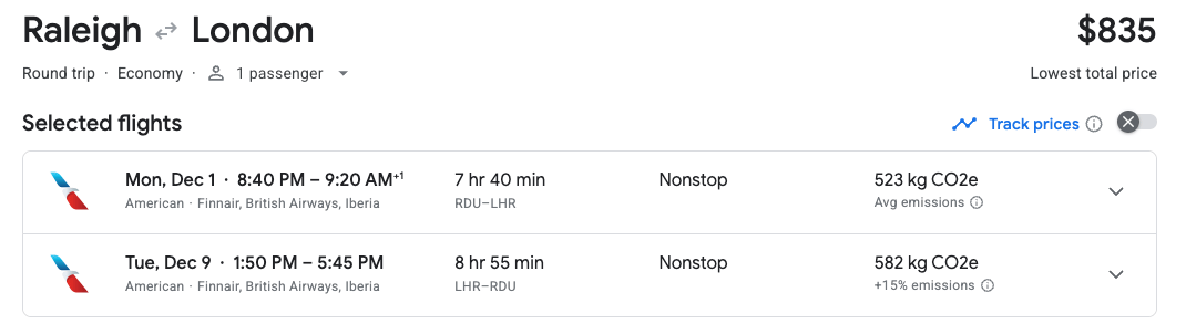 Price: $835 Round-Trip