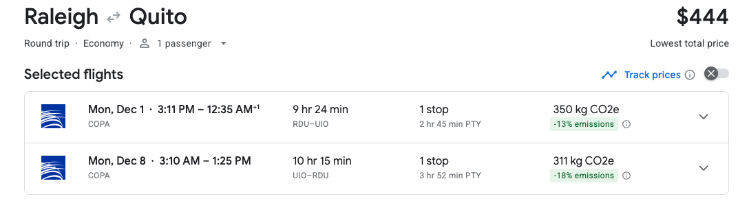 Price: $444 Round-Trip