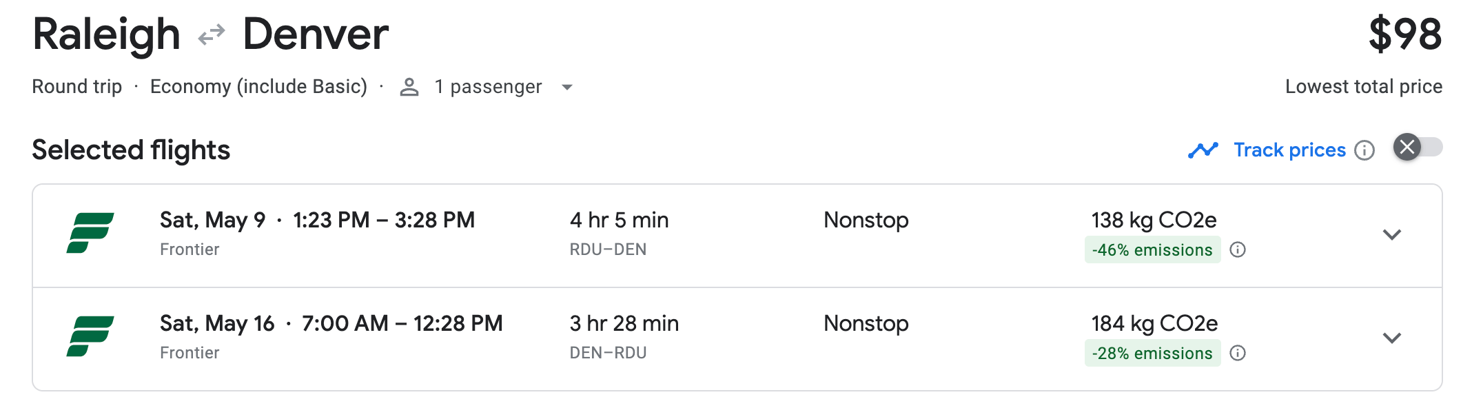 We recommend using the Google Flights calendar to browse all possible travel dates in green.