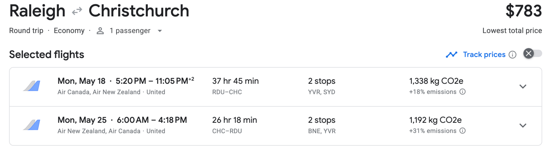 Price: $783 Round-Trip